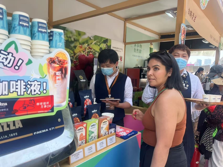 在现场大屏的那头,是卡乐罗开在意大利威尼托地区的咖啡馆,现场有消费者“买单”请客,屏幕那头,一位年轻消费者收到了上海隔空发去的礼物,屏幕内外,意式浓缩与上海拿铁在云端“干杯”,咖啡文化的“国际范”真实而温暖。