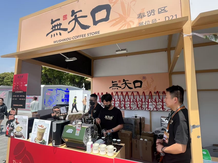 面朝一线江景的C41展位,一杯村咖,把节气诗意和乡村烟火揉进立夏的清风里。“节气小镇×朱雀咖啡”主理人黄峥嵘介绍,万祥镇此次带来了当地种植的头茬8424西瓜美式和拿铁特调饮品、非遗酒酿拿铁。“希望通过这次咖啡节,让更多人了解万祥镇,能来体验我们的特色美食和文化。”黄峥嵘介绍,此次推出的买咖啡送田活动,邀请市民游客前来感受新农村生活,大家可以在这块土地上亲手种植果蔬,也可以交由当地农场代为打理,还能在当地露营、喝咖啡、团建聚会,体验“一手咖啡一手锄头”的新农村生活。