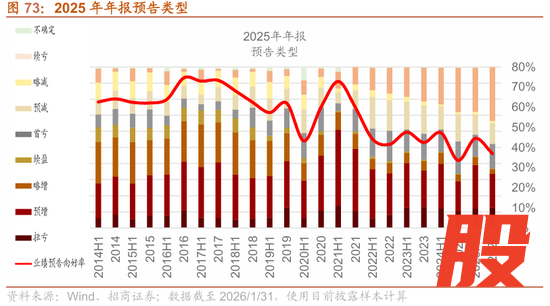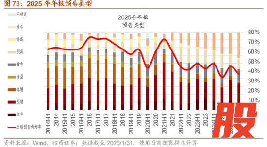 盈利方面,一方面,12月工业企业利润增速转正,但新旧动能分化持续,盈利修复较为缓慢,大类行业三个月滚动来看,盈利多有放缓,TMT和医药逆势改善,中游设备同比转负。另一方面,目前2025年年报业绩预告披露过半,业绩增速较高或有改善的领域主要集中在:部分涨价资源品(工业金属、金属新材料、能源金属、贵金属、化学制品等),AI景气催化的TMT板块(半导体、通信设备、计算机设备、软件开发等),出口优势凸显的中高端制造业(电网设备、自动化设备、通用设备、汽车零部件等)等以及非银等行业。从过去十年业绩预期后2月行业表现来看,60%的年份业绩预告增速较高的领域在2月仍有较好表现。