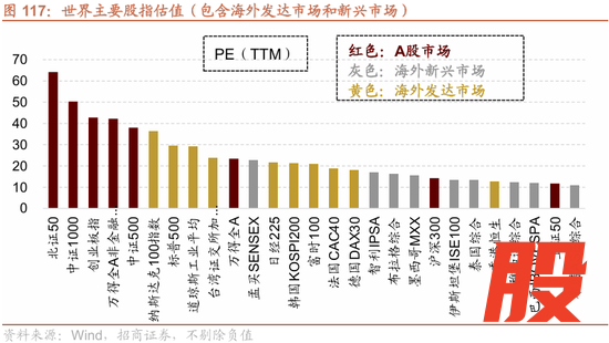与世界其他主要股市相比,全部A股的估值处于中高水平。
