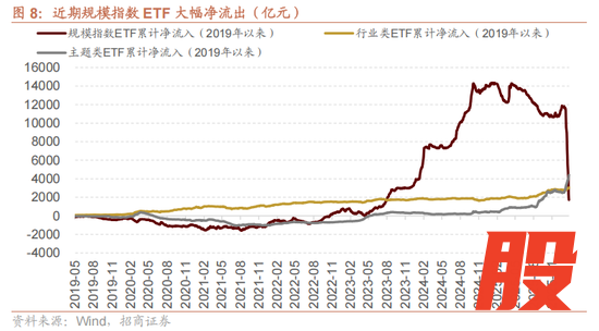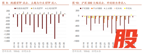 ETF流出聚焦于个别宽基ETF,科创转为净流入。详细拆分ETF流出情况,仅有跟踪宽基指数的规模指数ETF持续大幅净流出,日均流出超700亿,而主题指数与行业指数ETF持续逆势净流入。进一步拆分宽基ETF类别,可以发现沪深300、上证50与中证1000贡献了主要的资金净流出;但创业板ETF流出规模显著收窄,科创板ETF甚至出现了回流迹象。