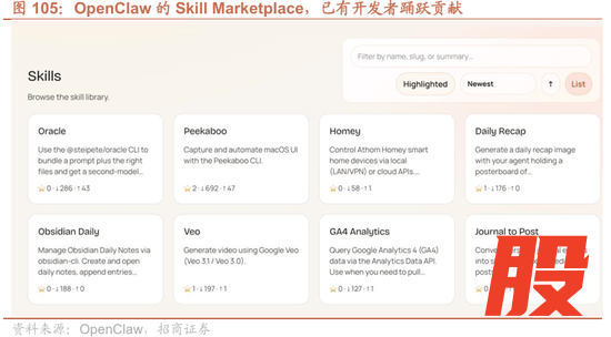 先前我们提到OpenClaw主要是基于各种App的接口来实现操控,在这个环节中,OpenClaw较为聪明、也较为符合当前AI社区趋势的一点是,它只做了通用内核,把接入不同App的工作交给社区开发者,最后市面上就出现了林林总总的关于各种工具的接入项目,这就导致了对于终端用户而言,构建自动化工作流的过程,就像是在玩一场高维度的“拼积木”游戏——通过加载不同的功能模块,将内核与具体的 App 操控能力无缝拼接。支撑这一积木式生态的底层契约,正是 Anthropic 推出的“Skills”(技能包)。