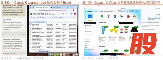 于是出现了以网页任务为主的“轻视觉 + 受控环境”的混合路线:把行动范围先收敛到网页与浏览器,在更可控的沙箱里做任务闭环。OpenAI 在 2025 年初发布 Operator,其底层是 Computer-Using Agent (CUA),强调在托管的虚拟浏览器环境中用截图理解页面并执行 GUI 动作;随后又把“研究/规划 + 动作执行”进一步收敛整合到 ChatGPT agent 与 ChatGPT Atlas 的 agent mode 里,主打“边浏览边代办”,典型场景就是订行程、预约、填表、购物等网页任务。与此同时,Google 也在 Chrome 内推进类似能力(以 Gemini 驱动的 Auto Browse 形态出现),同样强调对敏感操作的人工确认与权限控制。和纯视觉桌面代理相比,这条路并没有“摆脱视觉”,而是把视觉使用限定在更窄的域内、用更强的产品护栏来换取可用性与安全性。换句话说,它更像是把纯视觉的代价与风险“装进”浏览器沙箱里,先让闭环在高频场景落地。