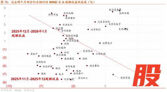 展望2月,在前期监管释放降温信号和ETF大幅流出后,市场在未来一段时间将会以震荡为主,顺周期涨价扩散和AI在春节前后普及预期成为市场的重要主线。今年2月有春节长假,春节长假之前,由于有长假期缺少明确的催化剂,预计市场活跃度会进一步下降。春节之后,由于临近两会召开,政策催化将会加速出现,春节之后指数有望有更好的表现。基本面层面,1-2月是数据真空期,从目前来看,产业端的边际变化带来的业绩改善趋势仍然是市场关注的方向。顺周期涨价品种,半导体光模块为代表的AI链依然是景气趋势之所在。市场风格进一步转向顺周期。政策层面,由于2026年是逢六逢一的五年规划第一年,也是政策落地的大年,围绕政策落地的交易机会此起彼伏。流动性层面,尽管居民增量资金有加速流入的态势,但是重要ETF投资者的大幅减持对冲了增量资金流入。而临近春节,融资余额一般会流出。使得节前资金面难以有大的改观。特朗普新提名美联储主席后,美元指数反弹,压制资金流入新兴市场。春节后,预计结构随着资金回流,资金面将会有更大的改观。总体来看,市场在2月以震荡为主,节后指数有望强于节前。主攻方向上,前期涨价品种开始向石油石化、食品饮料扩散,AI和半导体均有持续催化,建筑建材受益于十五五规划的重大项目。轮动加快可能是2月最重要的特征。