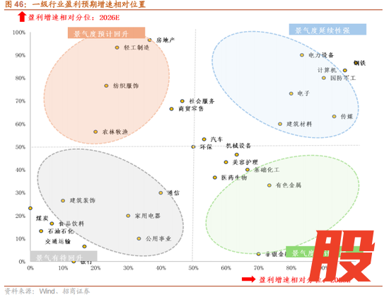 行业方面,目前业绩向好率较高的行业主要有资源品中有色金属、基础化工、钢铁;制造领域汽车、机械设备、电力设备;科技成长领域通信、电子,以及非银等行业。