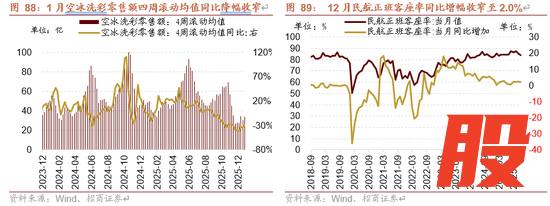 12月民航正班客座率为84.0%,同比增幅收窄至2.0%。12月上海港口集装箱吞吐量为449.92万TEU,当月同比增幅扩大至9.18%。