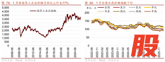 1月全国水泥价格指数下行,长江、东北、华北、华东、西北、西南、中南地区水泥价格指数均下行;玻璃期货价格上行。