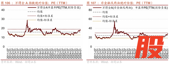 今年一月末非金融及两油万得全A绝对估值水平为28.00X(处于2010年以来74.8%分位),相比去年十二月末上行1.7x。