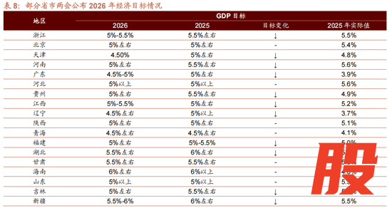 截止1月31号,20个省市召开地方两会并公布2026年各项经济目标。设置区间经济增速目标的城市大幅增加,包括浙江、广东、江西、新疆,因此,展望全国26年经济增速可能设为区间增速目标。
