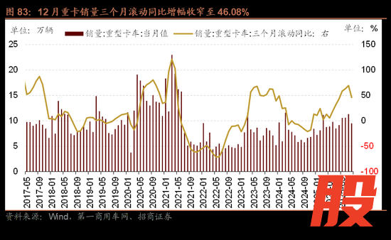 中游制造业:12月重卡销量三个月滚动同比增幅收窄