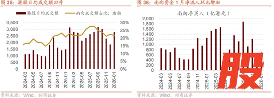 A股换手率上行,成交额上行。截至1月29日,上证A股换手率五日均值月环比上行0.76个百分点至2.05%;沪深两市日成交额五日均值月环比上行54.0%。