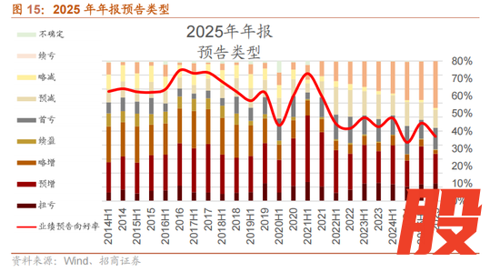 截至目前1月31日,共有3030家A股上市公司披露了2025年年报业绩预告/快报/报告,披露率约55%。主板、创业板、科创板、北证业绩披露率分别为50.3%、61.2%、62.3%、42.2%。业绩向好率(扭亏、预增、略增、续盈)约36.9%,略高于2024年,在过去十年中仍处于较低水平。