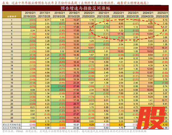 我们统计过去十年业绩预告增速与2月份行业的表现,可以发现60%的年份,业绩预告增速较高的行业在当年2月份有好的表现,典型的如2017年(对应2016年年报业绩预告,下同)、2018年、2020年、2022年、2024和2025年。因此景气趋势仍然是影响行业表现的重要因素。