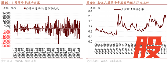 ⚑ 流动性与资金供需:2月增量资金或继续净流入,节前外资有望继续净流入,节后融资有望回流。宏观流动性方面,政府债券在1月集中发行缴款,对流动性形成一定抽水效应。央行采取了精准有力的对冲措施,通过中期流动性工具弥补资金缺口,2月资金面有望继续保持平稳充裕。外部流动性方面,从特朗普新提名的美联储主席沃什的政策主张来看,沃什更可能采取温和且渐进的降息策略,其更倾向于将降息与缩减资产负债表(缩表)配合,以对冲宽松效应,避免通胀反弹。目前市场对2026年的降息预期从原先的1次上调至2次。股票市场资金供需方面,1月股票市场可跟踪资金转为净流出,融资成为主力增量资金,ETF大幅净赎回。资金供给端,新发偏股基金规模有所回升,以沪深300为代表的规模指数ETF大幅净流出,融资资金风险偏好回升净流入。资金需求端,重要股东净减持规模扩大;IPO发行规模及再融资规模有所回落,资金需求规模保持平稳。展望2月增量资金有望继续净流入,节前外资有望继续净流入,节后融资有望回流。